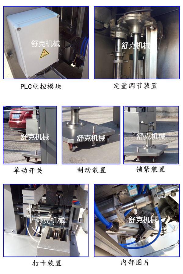灌腸機打卡機采用先進技術(shù),運用氣動,光電控制原理,配有微電腦控制設(shè)計制造的一種新型設(shè)備,可連續(xù)自動定量灌裝、打卡,操作簡單,維修方便,重復(fù)性好,定量準確,封口嚴緊,灌裝飽滿程度可調(diào),扣形美觀,質(zhì)量可靠,結(jié)構(gòu)合理,性能可靠,操作簡單,維護方便,是肉類加工的理想設(shè)備。采用優(yōu)質(zhì)不銹鋼材料制成,表面經(jīng)過特殊工藝處理,外形美觀,結(jié)構(gòu)緊湊合理,密封防水,易于清洗。